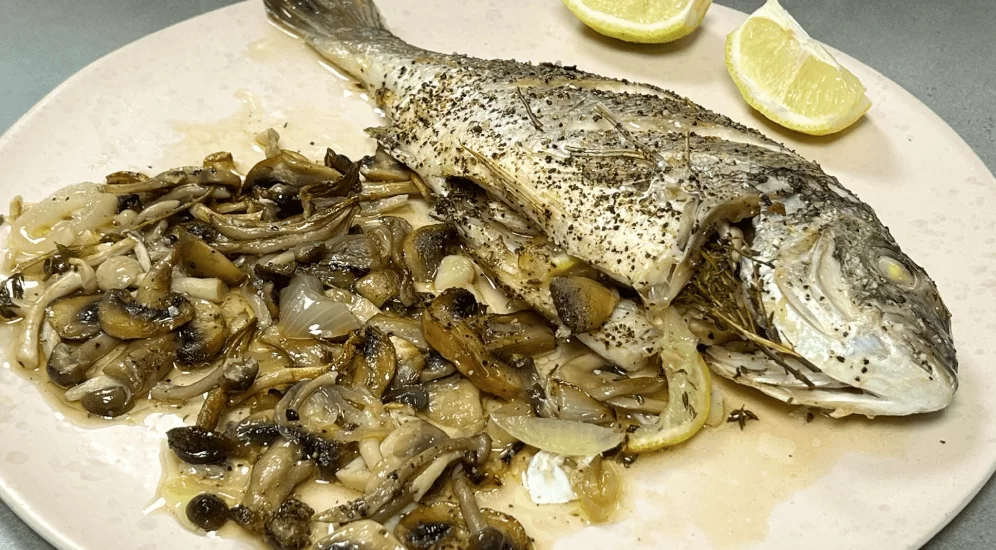 - ממלאים את הדגים בפטריות, שום, לימון וקורנית.