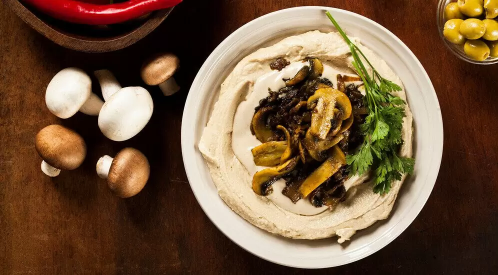 - מגישים מעל חומוס עם פטרוזיליה וצנוברים.