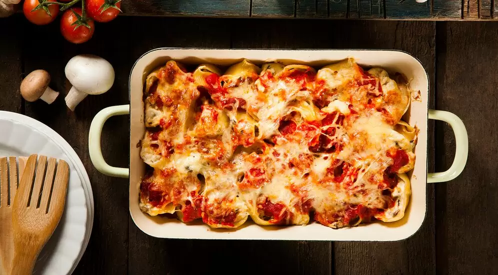 - מניחים בתבנית (שמתאימה לתנור) את קונכיות הפסטה וממלאים בתערובת הגבינות והפטריות.