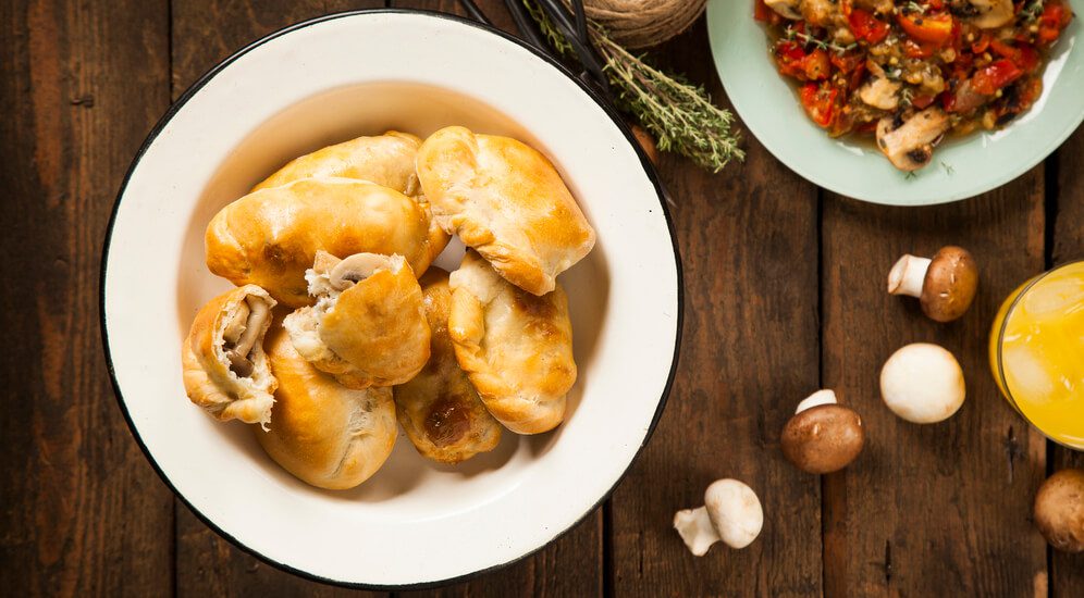 - מרדדים כל בצק לעיגול ומניחים בחלק התחתון, באמצע, כף גדושה מהמילוי. סוגרים לצורת חצי עיגול ולוחצים את הקצוות של הבצק עם מזלג כדי שהמילוי לא יברח.