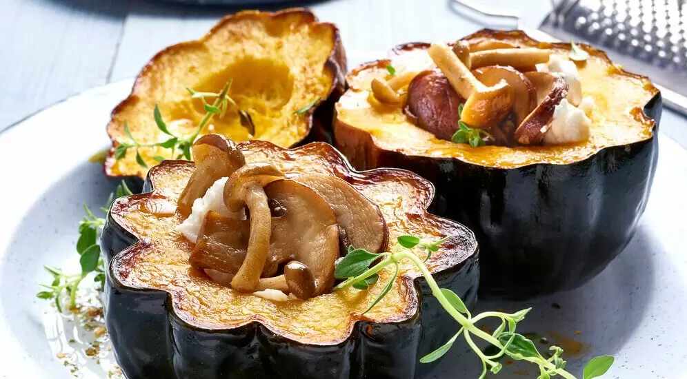 דלעת ערמונים במילוי פטריות, גבינת עיזים, צנוברים, עשבי תיבול – NO.66