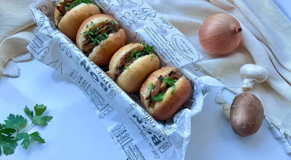 - בזמן ההתפחה נכין את המילוי: נטגן את רצועות הבצל מעט ונוסיף את הפטריות. לאחר מספר דקות שהבצל והפטריות השחימו, נוסיף רוטב ברביקיו, פטרוזיליה ומלח לפי הטעם.