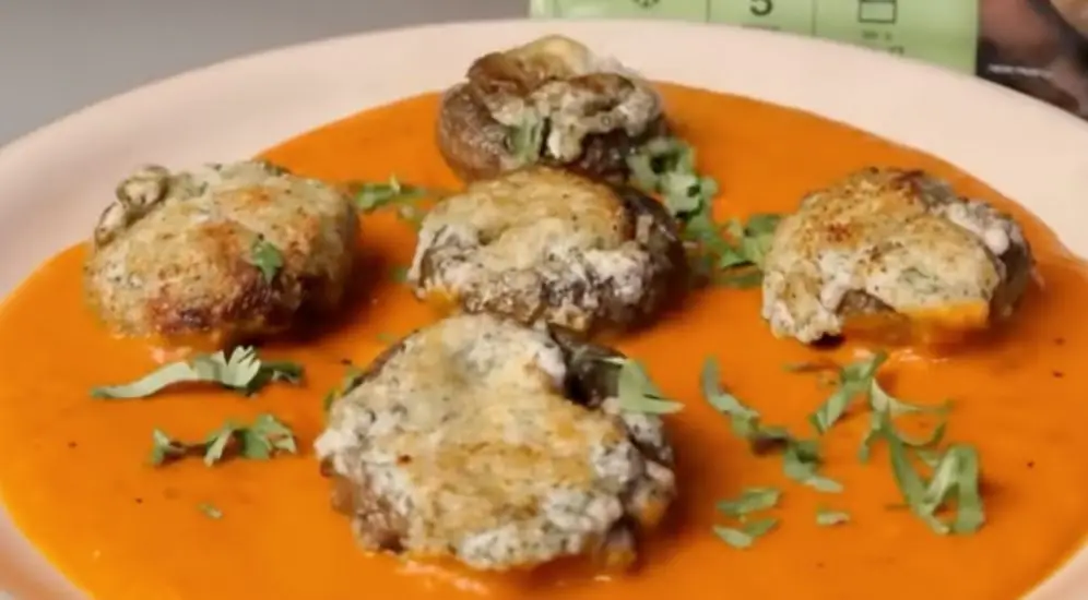 פטריות ממולאות בנוסח ים תיכוני על קרם עגבניות צלויות - foody_israel@